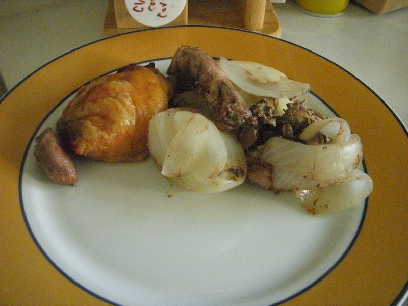 I had a thigh in my fridge defrosting for two days so I just had to cook it, hence why it's in the pan. Glad it got to roast in the delicious organic juices, I bet it'll taste awesome!
